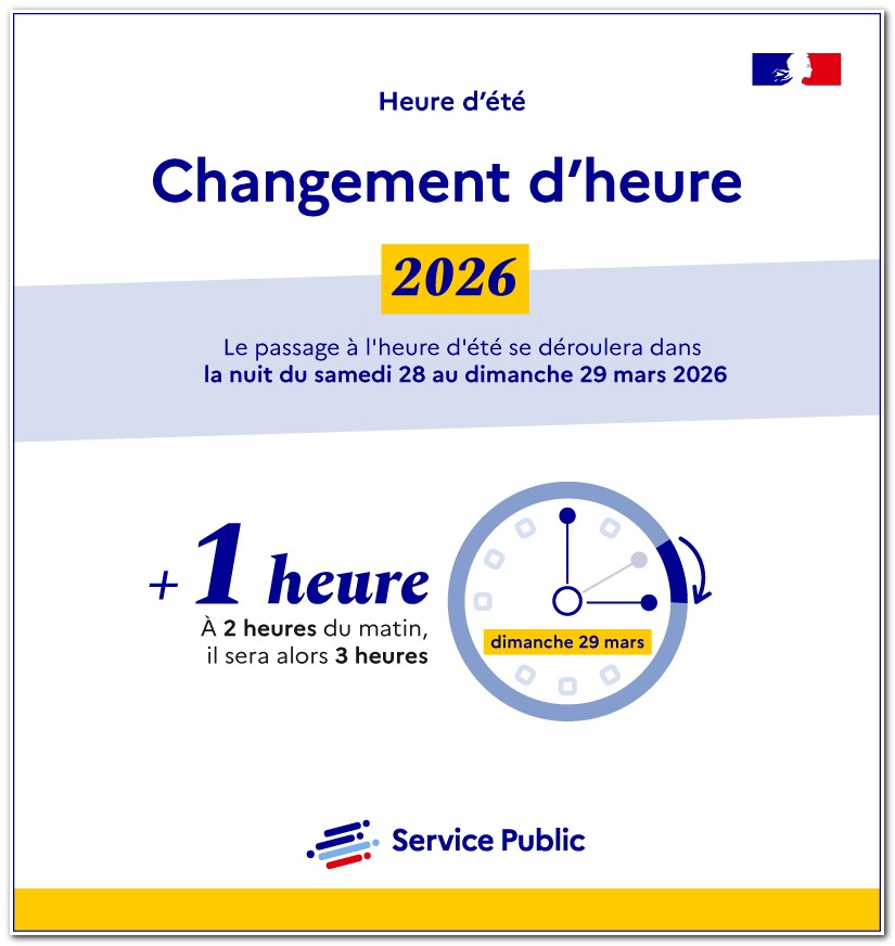 Changement d’heure – 28/29 mars 2026