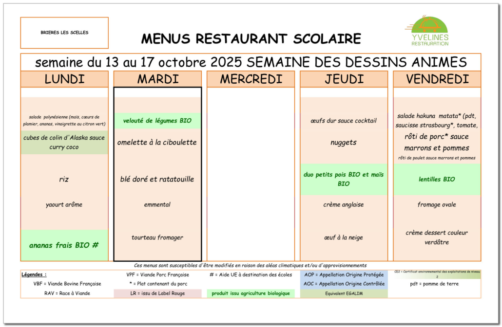 Pour accéder aux menus de la cantine de l’école de Brières les Scellés, vous pouvez aller dans le menu « Ecole et enfance / Les menus de la cantine » , ou cliquez directement sur le lien: Menus cantine Brières